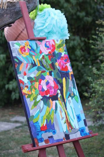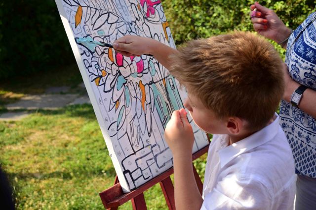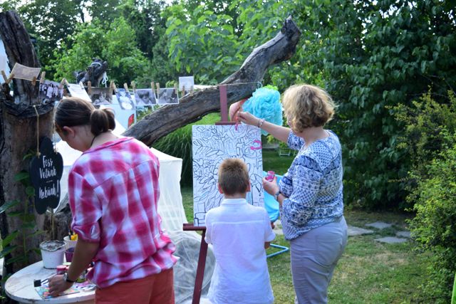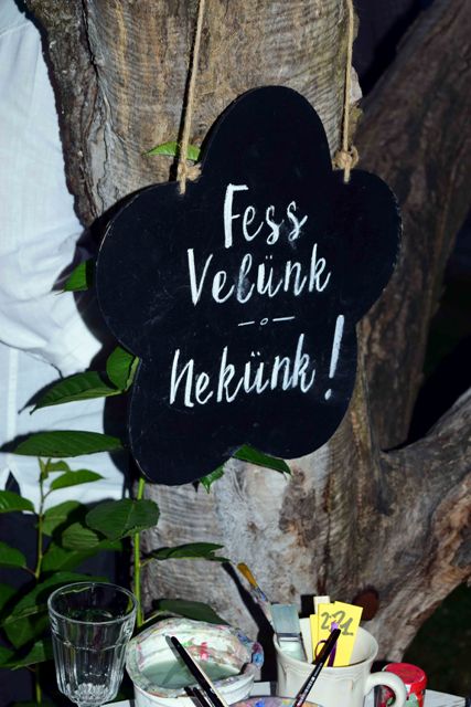 "Fess velünk - nekünk" festő program. Varga Dalma álmodta meg ezt a mini programot a vendégeknek. Egy előre egyeztetett kompozíciót rajzolt elő egy festővászonra, melyen színkódok alapján kellet kifesteni a részleteket. A csel az volt, hogy minden vendég választhatott egy szín(kódo)t és azzal festhette ki a festmény rá eső színű részét. Így a végén egy igazán egyedi, a vendégek keze által készült műalkotást is kaptunk ajándékba. Ugye milyen csodás?