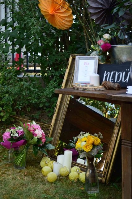 Sokan azt gondoljátok, hogy A DEKORÁCIÓ egy ilyen, vagy bármilyen eseményen nem is olyan fontos, meg csak kidobott pénz. Szerintem pedig az étel és ital után a második legfontosabb dolog. Megkérdőjelezhetetlen szerepe van azt est hangulatának kialakításában, és hogy a vendégek tényleg a bőrükön érezzék a "feelinget". Hiszem, hogy környezetünk igenis hatással van ránk, és nagyban befolyásolja a lelkiállapotunkat. Így ha azt tudjuk pozitív irányba befolyásolni, akkor mindenképp tegyük meg. Nem kell nagy dolgokra gondolni. Használjuk a kedvenc, harmonizáló színeinket. Gondoskodjunk hangulatvilágításról, színes, illatos mécsesekről, úszógyertyákról. Itt-ott elhelyezett egy-két friss, gyönyörű kisebb-nagyobb virágcsokrokkal egyszerűen nem lőhetünk mellé. Egy sarokban megbújó tükör, előtte virágok, míves tányérok, tálalók az asztalon, zászlógirlandok, hogy ne is soroljam tovább. Na, Kiki ebben egy igazi őstehetség. Olyan hihetetlen fegyelemmel dolgozik, hogy szinte képes kizárni maga körül a világot, hogy csak a hangulat megteremtésére koncentráljon. Fantasztikus tehetséggel alkotja meg a tökéletes egyensúlyt a különböző dekor elemek között, s a végeredmény maga a csoda. Olyan természetesen és profin nyúl mindenhez, hogy az hihetetlen. Nem érzel semmilyen erőltetettséget, vagy " izzadságszagot", mert mindenből pont annyi, úgy és ott van amennyinek, ahogyan lennie kell.