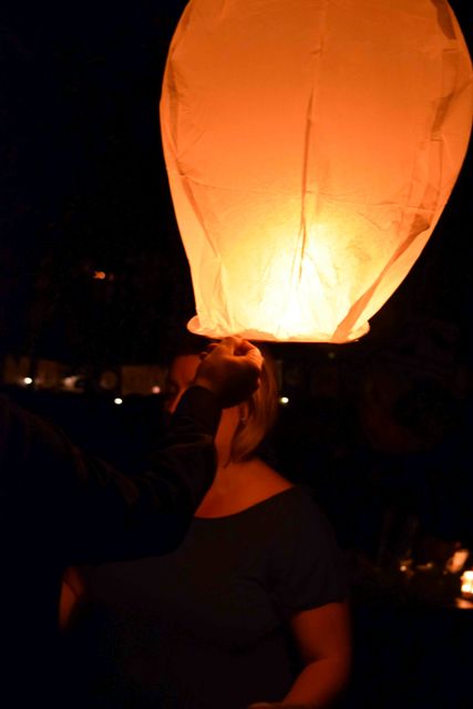 Kívánság lampiont is felengedtünk. Tudjátok, az a gyönyörű látvány, amikor vagy 1000-t meggyújtanak egyszerre a tengerparton és eleresztik kívánva valamit. Nálunk csak 10 volt, mert féltem, hogy felgyújtjuk Biatorbágyot... Tényleg volt valami megfoghatatlan hangulata, ahogy a kis mini "hőlégballonaink" elindultak a nagy fekete éjszakába egyre feljebb és feljebb, míg el nem tűntek.