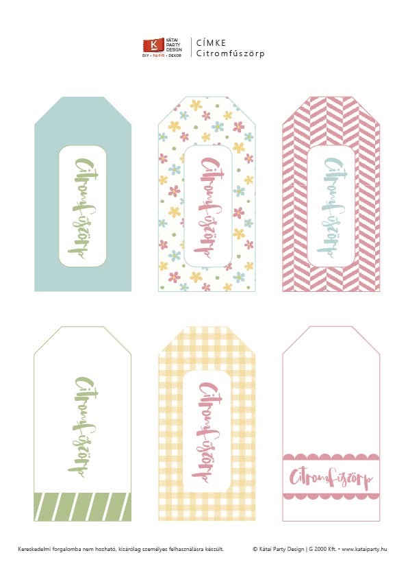 Persze nem lenne teljes a recept, ha nem készítettem volna Nektek helyes kis Citromfűszörp címkéket is, amiket a szörpös üveg nyakára tudsz tenni, hogy mindig felismerd a kamrában.
